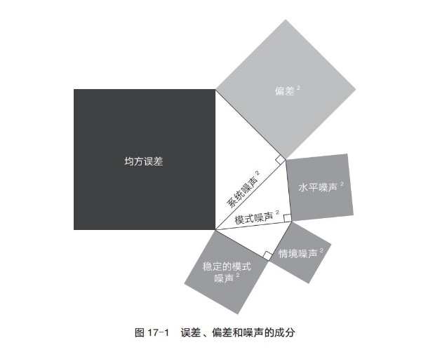 雖然我們很想謹(jǐn)慎一點,盡量避免基于有限的案例做出過度性概括。然而,整合我們研究后發(fā)現(xiàn),穩(wěn)定的模式噪聲實際上比系統(tǒng)噪聲的其他成分都更為重要。由于我們很少在同一研究中全面地探究誤差的各個組成部分,因此需要進(jìn)行精確的分析才能得出這樣一個暫時性的結(jié)論。簡而言之,以下就是我們所知道的和所不知道的。(摘自第17章 噪聲源:偏差是引人注目的圖形,而噪聲是不受我們關(guān)注的背景)