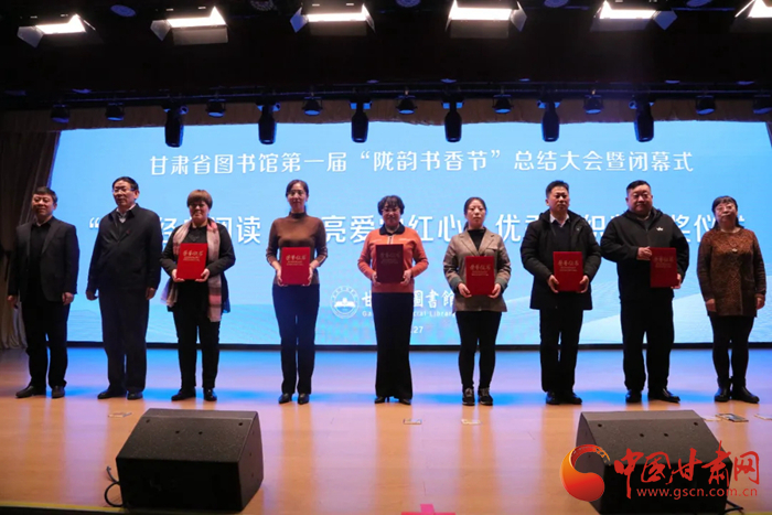 中國(guó)甘肅網(wǎng)12月28日訊(本網(wǎng)記者 張?zhí)m琴 通訊員 吳鵬)12月27日,歷時(shí)8個(gè)月的甘肅省圖書(shū)館第一屆隴韻書(shū)香節(jié)圓滿落幕。閉幕儀式上播放了第一屆“隴韻書(shū)香節(jié)”活動(dòng)總結(jié)短片和書(shū)香家庭宣傳短片,公布了“隴韻書(shū)香節(jié)”形象標(biāo)識(shí)(LOGO)方案,并為“甘肅省第一屆書(shū)香家庭”獲得者、“紅色經(jīng)典閱讀 點(diǎn)亮愛(ài)黨紅心”活動(dòng)獲獎(jiǎng)?wù)哳C獎(jiǎng)。