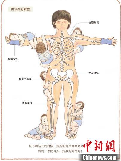 《我的媽媽》內(nèi)文圖,展現(xiàn)了產(chǎn)后媽媽會(huì)發(fā)生的骨骼疼痛 接力出版社供圖