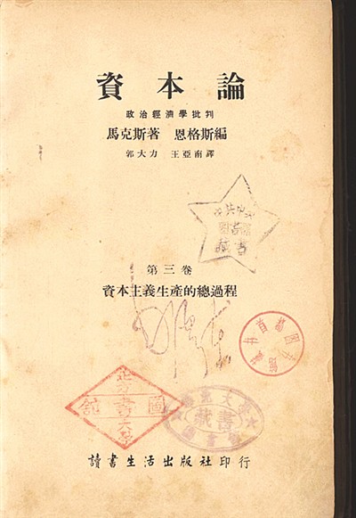 人大圖書(shū)館還藏有郭大力、王亞南翻譯的中國(guó)首個(gè)《資本論》全譯本的初印本。這是毛澤東同志贈(zèng)送的,封面鈐有“毛澤東”簽名章。