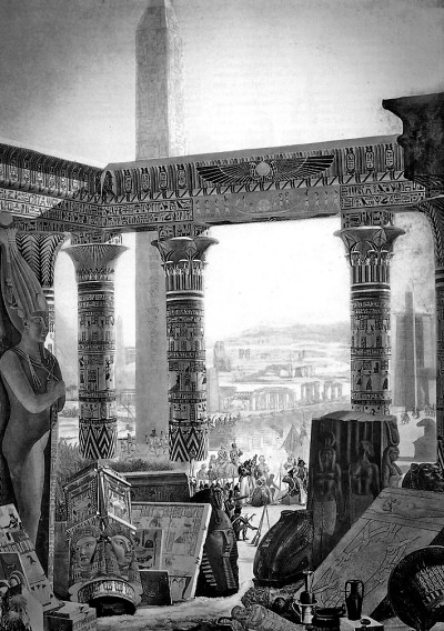 不過,真正使埃及古文明得到新生的,關(guān)鍵還在于拿破侖軍隊中的近200名著名學(xué)者,他們中有東方學(xué)家、藝術(shù)家、數(shù)學(xué)家、化學(xué)家、醫(yī)生、建筑師、工程師、自然科學(xué)家、社會學(xué)家等,其任務(wù)是考察埃及社會的方方面面,“探索、繪圖,并對不為人知的埃及進(jìn)行全方位的描述、探查和研究”。這些學(xué)者回國后,把他們在埃及的所見所聞、對埃及風(fēng)土人情的素描和制作的拓片等精心整理出來,于1809年至1829年之間,陸續(xù)編纂和出版了24卷本的《埃及記述》(又譯作《埃及志》等)。該書一經(jīng)問世立即引起轟動,它是第一套系統(tǒng)性介紹古埃及文明和社會面貌的科普百科全書式讀物,內(nèi)容極為豐富,插圖之精美、裝幀之考究,都令人稱贊。
