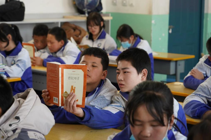 寧夏靈武市狼皮子梁學校的學生同讀一本書。受訪者供圖