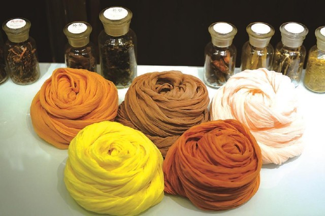而與大多數(shù)傳統(tǒng)色彩研究者不同的是,曾啟雄極為重視實驗考證。作為一位技藝精湛的染色家,其論著里介紹傳統(tǒng)染色的文本內(nèi)容及圖片,都是他親歷親為、反復(fù)實驗后的成果,這也是該書最為精彩之處。在染色實驗過程中,除了復(fù)原了傳統(tǒng)顏色的本來面貌外,作者還做出如下貢獻:首先,通過大量實驗印證了古籍記載的真?zhèn)危⒓m正了其中一些不實之處。比如,他通過在柘木里添加明礬、高溫染色后的結(jié)果,顛覆了以往認為唐代帝王穿用的“柘黃”袍服是暗淡赭黃色的普遍認知,印證其應(yīng)為類似明清時代帝王使用的明黃色。其次,使用不少篇幅介紹了不同的染料、媒介物等因素對于染色效果等的制約作用。以石榴皮作為染材為例,當它與不同媒染劑,如明礬、鐵等進行染色時,則會形成由黃色到黑褐色的不同顏色。即使采用相同的染法,因棉麻絲綢等介質(zhì)迥異,也會染出不同顏色等。最后,該書對于各種染料特點、工藝程序、顏色效果等的表述,較其他相關(guān)論著也更加纖悉無遺和引人入勝,如關(guān)于紫膠蟲的染色工序的詳盡介紹等,讓讀者有一種身臨其境、意欲參與的感受。