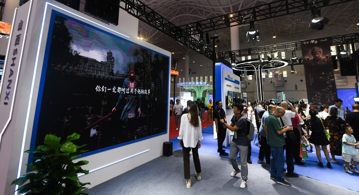數(shù)博會(huì)上,國(guó)產(chǎn)游戲《黑神話:悟空》備受矚目。山西展團(tuán)以游戲中“悟空”路線為主題,重點(diǎn)展示了一批介紹山西古建筑、歷史文化遺產(chǎn)的出版物,“悟空拍照區(qū)”成了“熱門打卡地”。