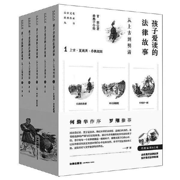 法律文化是中華文化的組成部分,從中華優(yōu)秀傳統(tǒng)文化中汲取營(yíng)養(yǎng),當(dāng)然包含法律文化。中華法律文化歷史悠久,有精華,也有糟粕,選材是至關(guān)重要的。作為法治文化經(jīng)典傳承叢書(shū),《孩子愛(ài)讀的法律故事——從上古到明清》1—5冊(cè)由法律出版社重大項(xiàng)目辦公室策劃和編輯統(tǒng)籌。著名法史專(zhuān)家何勤華在《序言》中說(shuō):“本書(shū)選取了30個(gè)符合現(xiàn)代價(jià)值導(dǎo)向的中國(guó)傳統(tǒng)法律文化故事,雖只是滄海一粟,然見(jiàn)微知著,對(duì)小讀者理解中華優(yōu)秀傳統(tǒng)法律文化頗有益處。”法律學(xué)者羅翔在推薦語(yǔ)中寫(xiě)道:“書(shū)中的每一個(gè)故事都像一顆顆種子播撒在孩子們的心田。讓法律意識(shí)和歷史智慧在他們心中生根發(fā)芽。本書(shū)不僅是普法的工具,更是歷史與文學(xué)素養(yǎng)的培養(yǎng)皿。”