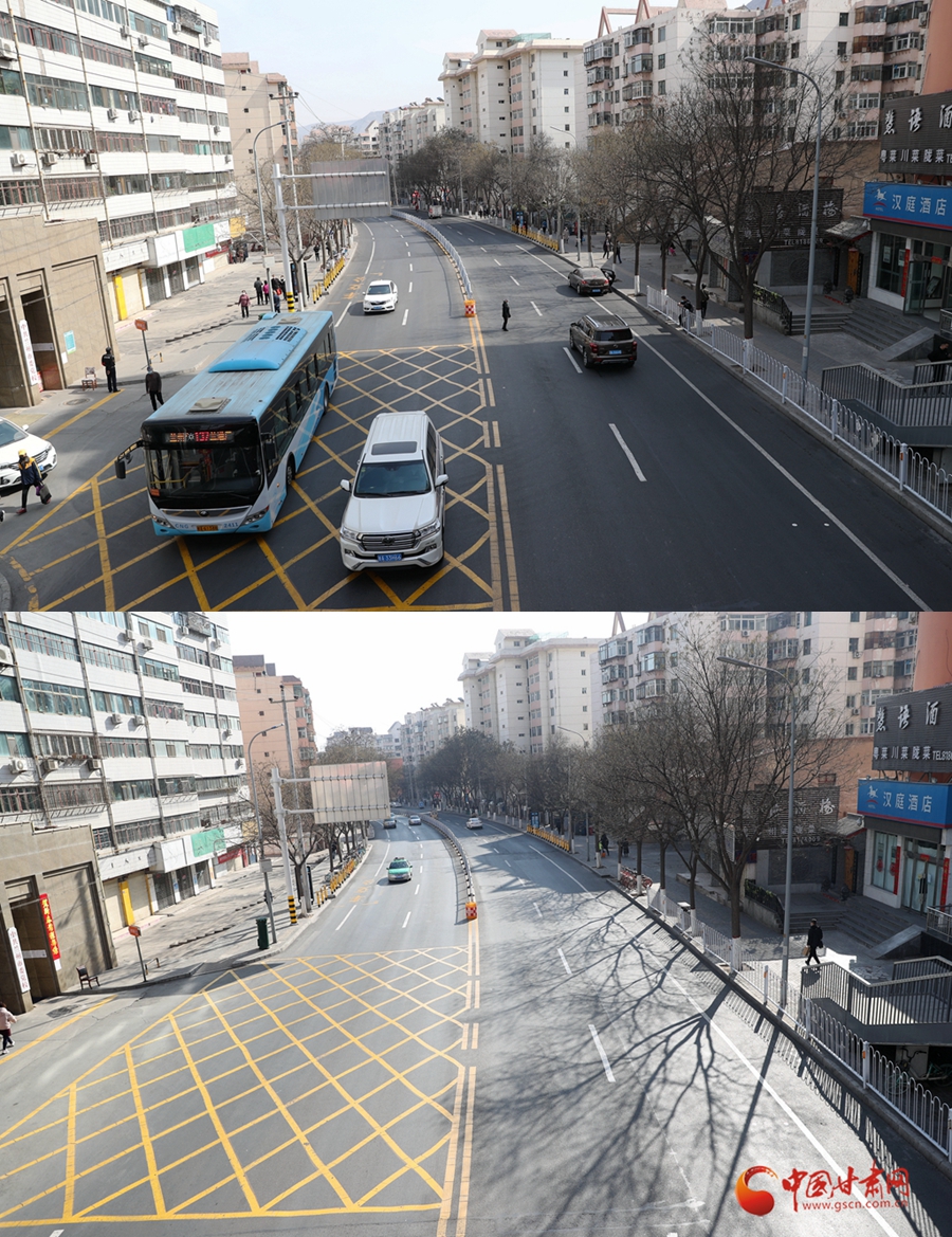 3月3日(圖上)與2月4日(圖下)拍攝的蘭州中山路