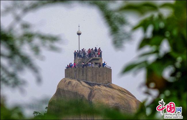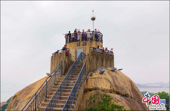 說到自然風光,便不能不提日光巖——這島上的最高峰。日光巖別名“晃巖”,相傳1641年,鄭成功來到此地,見此地風景勝過吉林日光山,便把“晃”字拆開,稱之為“日光巖”。要登臨此巖,一窺日光,便要辛勞走一段山路。其間渾圓的巨石層出不窮,蒼郁的古樹隨處可見,更有閩南大厝、名人題字與這些自然風景相得益彰。于是游人往往在心曠神怡中,路過“九夏生寒”“鷺江龍窟”,經(jīng)由“閩海雄風”“古避暑洞”,不知不覺間,來到巖頂?shù)钠脚_。立定此處,憑欄遠望,只見輕靈的云天近在咫尺,島上的屋宇盡收眼簾——別提有多么愜意!難怪有詩人寫道:“一葉輕舟破霧霾,波濤滾滾此登臺。日光巖上憑欄望,隔岸清風過海來。”(陳仁德句)