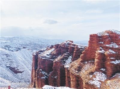 3月8日,平山湖迎來(lái)了這個(gè)春天的第一場(chǎng)雪。當(dāng)春雪與紅色的峽谷邂逅,一襲素衣加身,雪舞蒼穹,打破了冬日的沉悶和寂靜,藍(lán)天、紅巒、白云構(gòu)成了一幅迷人的畫(huà)卷,平山湖大峽谷瞬間有了生氣與靈性。工作人員和游客都不由地放下手機(jī),靜靜地欣賞著這自然界的奇跡。午后,穿越峽谷,春雪窸窣的消融聲在大地上靜靜蔓延,連呼吸聲都顯得厚重。