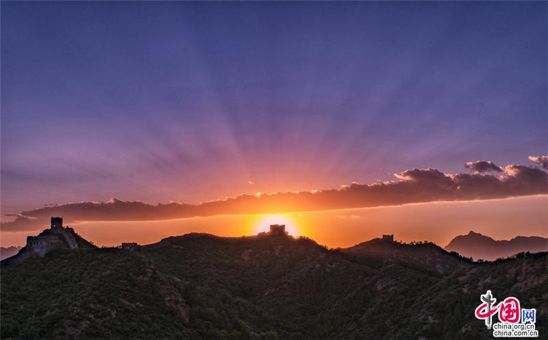 金山嶺長城,仿佛一部鴻篇巨制,光芒萬丈的日出中巨龍飛舞。