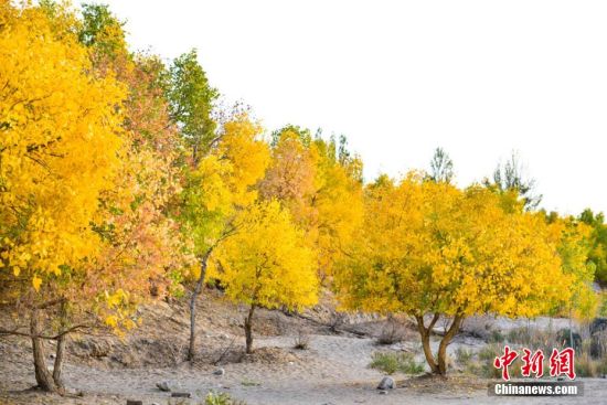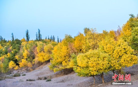 圖為胡楊秋色吸引不少游客和敦煌市民前來賞秋。 王斌銀 攝