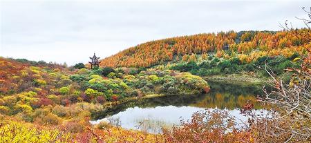 這里一年四季皆有值得欣賞的美景,可謂一時一景。春夏時節(jié),桃木山一帶草木蔥蘢,峰嶺翠嶂,前、后兩湫在一望蔚然的萬千丘壑中辟出兩點平闊明凈的幽境,像不惹凡塵的仙女隱在人跡不到處,任群山映襯著清靈俊秀的模樣,吐納著關山深處的空靈氣息。其前湫水深波靜,不能見底,水草飄搖,游魚雜出,水面倒映著四岸草木和亭臺曲欄,岸邊偶有漁人垂釣或游客輕歌,一派清幽韻致。后湫水淺色深,人工砌成的蓮花臺處于密藻之中,水邊泉眼密布,形成陰濕滲水帶,西側與北坡各有一座寺院,白墻金頂隱在一片蔥蘢之中,點綴成趣。每到初夏,后湫北坡般若寺周圍遍開一種白色野花,因必為兩朵連枝并開,人們稱其姊妹花。此時遠望近觀,可見花濃成勢,純潔芬芳,自成一景。若在清晨或雨后,云霧彌漫山間,湫池的青白水面在渺渺煙雨中依稀顯隱,變幻不定,斯山斯水頓如仙界。