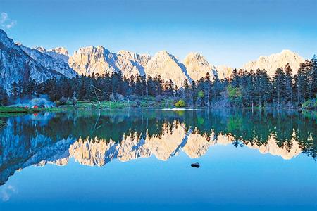 達(dá)爾宗湖四周松柏參天,灌木叢生,湖邊延伸著翠綠如毯的青草地。整個(gè)湖面呈不規(guī)則的葫蘆形,湖水深不可測(cè)。它時(shí)而碧波蕩漾,時(shí)而平靜如鏡,宛如嫻靜溫柔的少女。