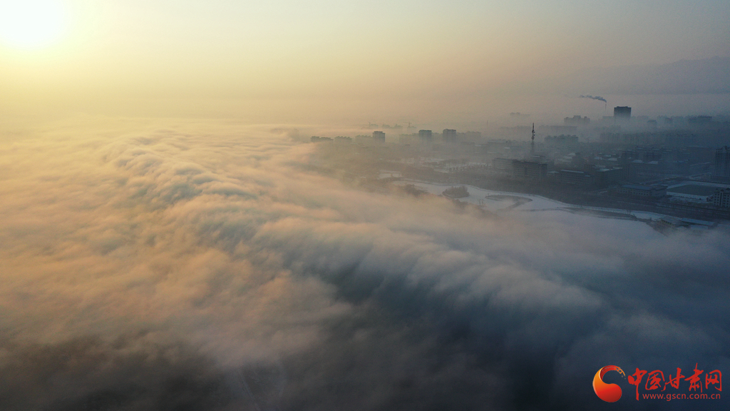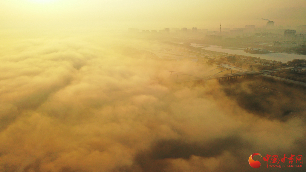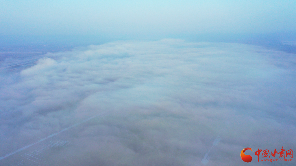 張掖市高臺(tái)縣黑河國(guó)家城市濕地公園上空的云海景觀(guān)。