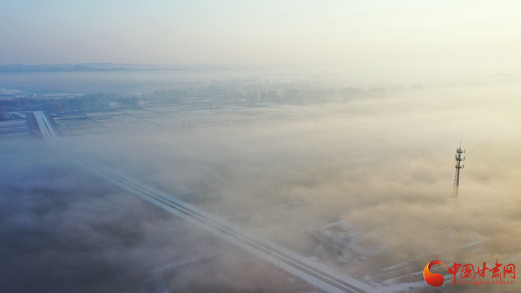 2月8日清晨,甘肅張掖市高臺(tái)縣黑河國(guó)家城市濕地公園上空霧浪翻滾,虛無(wú)縹緲,恍如天宮仙境,呈現(xiàn)出海市蜃樓般的云海奇觀(guān),在陽(yáng)光的照射下,格外美麗。由于多年來(lái)黑河生態(tài)治理,冬天封凍,加之近日大范圍的降雪低溫天氣,黑河的水面上經(jīng)常霧氣蒸騰,兩岸的樹(shù)木玉樹(shù)瓊花,形成霧凇景觀(guān),如同童話(huà)世界里的仙境一般圣潔,令人心曠神怡。