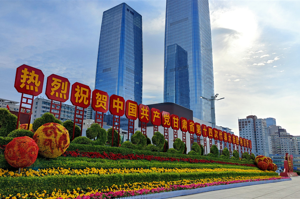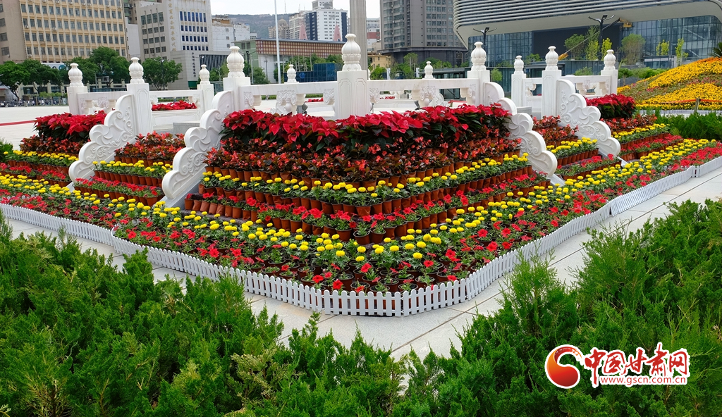 蘭州市東方紅廣場全新的花壇喜迎省第十四次黨代會(huì)