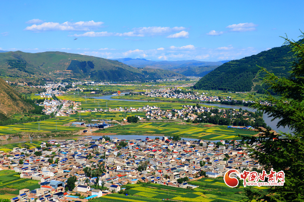 盛夏時(shí)節(jié),岷縣十里鎮(zhèn)洮河兩岸的油菜花競(jìng)相綻放,與民居、山川、林地、豐收在望的各類(lèi)中藥材相映,構(gòu)成了一幅生態(tài)宜居的田園畫(huà)卷,美不勝收。
