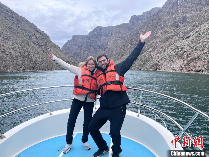 圖為高佑思和露露在龍羊峽乘船。李江寧 攝