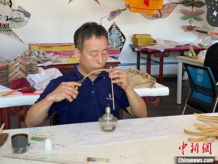出生在風箏世家的趙艷芳說,為了教大家制作風箏,自己先學習風箏制作的四門基礎功課——扎、糊、繪、放,其中扎風箏骨架是最難的,主要難在竹條的烤制,因為一不小心就會烤糊。