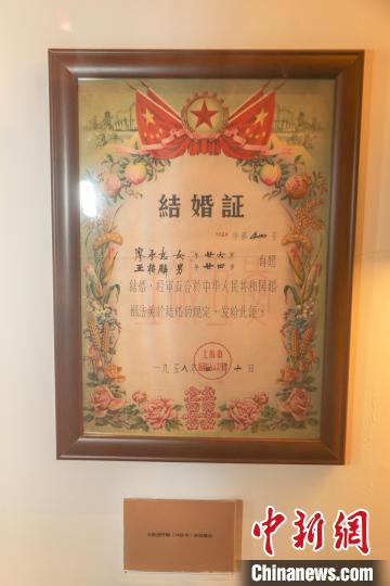 圖為博物館展出的建國(guó)初期的結(jié)婚證?!⒘?nbsp;攝