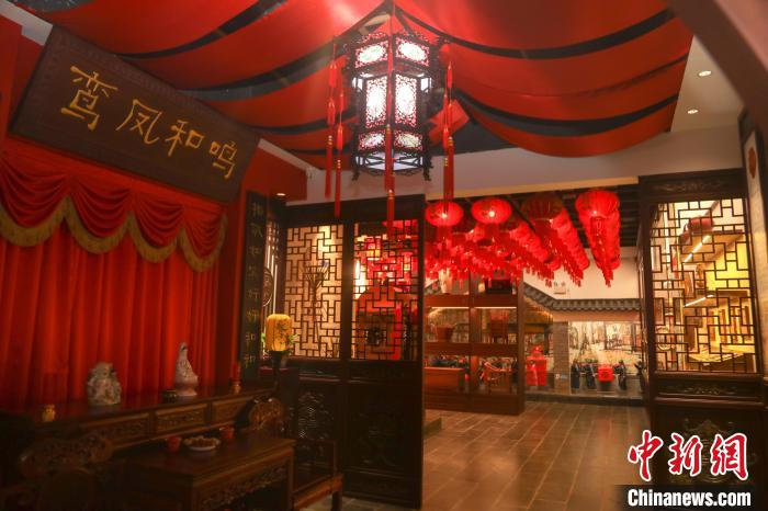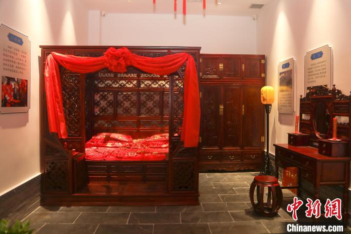 圖為博物館內(nèi)布置的中式傳統(tǒng)風(fēng)格新婚洞房。 劉力鑫 攝