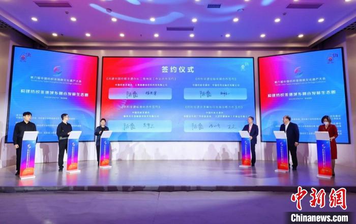 會(huì)上,嘉賓們共同見證了共建中國(guó)紡聯(lián)非遺辦長(zhǎng)三角地區(qū)工作站合作簽約、紡織非遺出版?zhèn)髅胶献骱灱s、紡織非遺標(biāo)準(zhǔn)化合作簽約、紡織非遺京津冀協(xié)同發(fā)展戰(zhàn)略合作簽約、昆曲《御題棉花園》項(xiàng)目啟動(dòng)簽約、我家的毛巾會(huì)唱曲兒授權(quán)合作簽約、共建河北大學(xué)高陽文化研究中心合作簽約等多項(xiàng)合作的達(dá)成。舉辦了中國(guó)紡織非遺推廣大使“推進(jìn)城鄉(xiāng)融合發(fā)展、全面實(shí)現(xiàn)鄉(xiāng)村振興”倡議行動(dòng)。