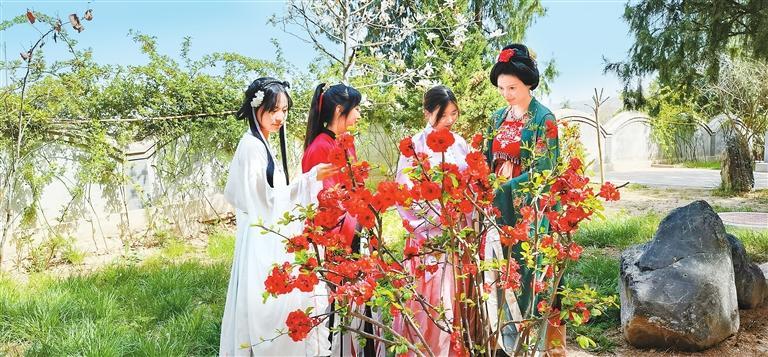 中國(guó)甘肅網(wǎng)4月10日訊 據(jù)蘭州晨報(bào)報(bào)道(奔流新聞·蘭州晨報(bào)記者王蘭芳)“百花錦繡,龍城花朝。”4月9日下午,由天水市玉泉觀大景區(qū)服務(wù)中心、天水市博物館、甘肅公航旅天水名城公司主辦的天水市第二屆漢服“花朝節(jié)”盛大啟幕。來(lái)自天水市的數(shù)百名漢服愛好者身著各色漢服,或云鬢斜簪輕拂團(tuán)扇,或衣帶飄飄款款而來(lái)。那一刻,煙火人間與國(guó)潮美學(xué)完美融合,“同袍”們盛裝打扮,共同歡慶“花朝節(jié)”。