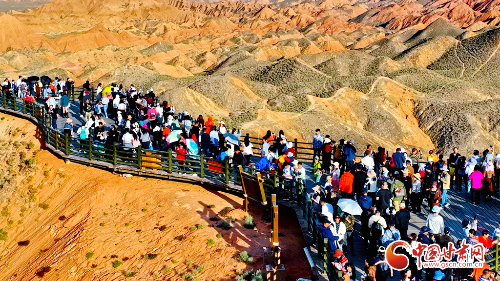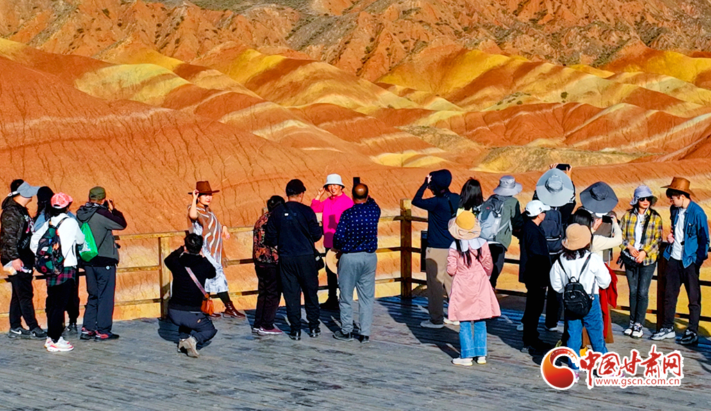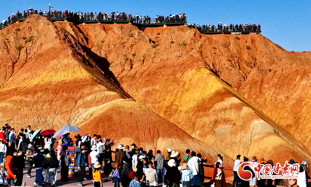 9月30日,甘肅張掖七彩丹霞景區(qū)內(nèi)人頭攢動,全國各地的游客紛至沓來,欣賞獨特的丹霞地貌,領略西北壯美景色。
