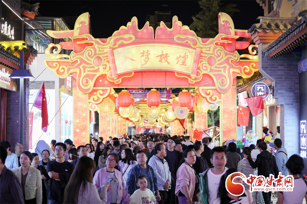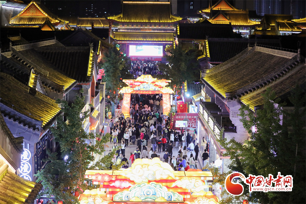 10月1日,國(guó)慶節(jié)期間,位于蘭州市七里河區(qū)的蘭州老街燈光璀璨,市民和游客紛紛前來賞景、游玩、品美食,用多種方式慶國(guó)慶、度假期。