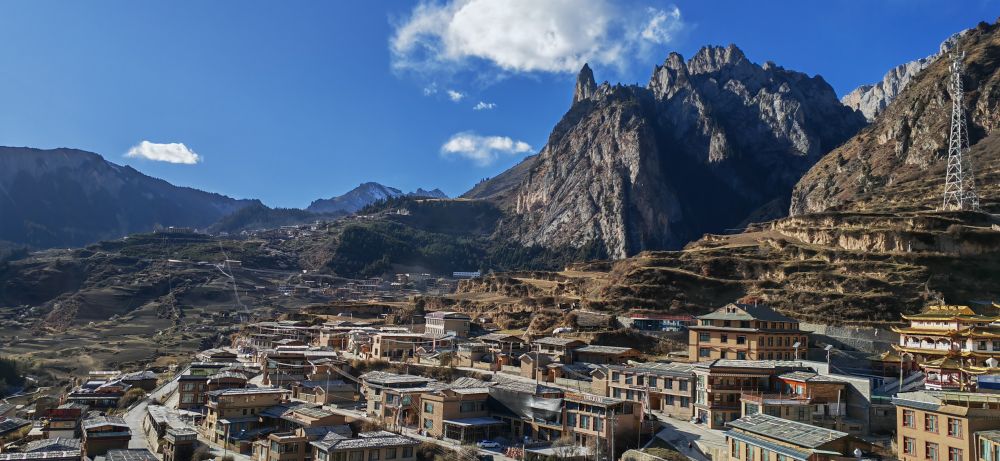 雪后初霽,群山環(huán)抱的扎尕那半隱在繚繞云霧中。一排排榻板房隱匿其間,錯落有致。正值深冬,這里的村民們仍閑不住:搭建新樓、翻修舊房、鋪設步道,準備迎接新一年的旅游旺季。