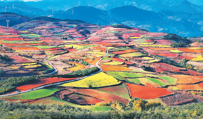 冬日艷陽下,云南省昆明市東川區(qū)紅土地鎮(zhèn)獨(dú)特的紅土地景觀,吸引各地游客前來,也帶動(dòng)周圍百姓增收。