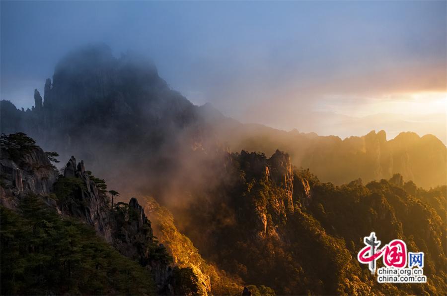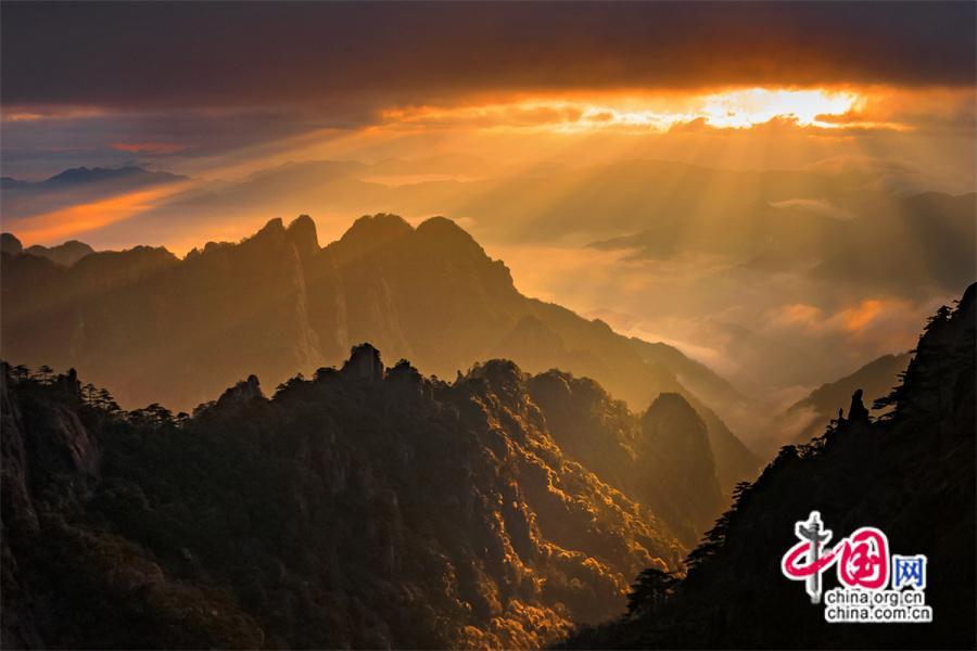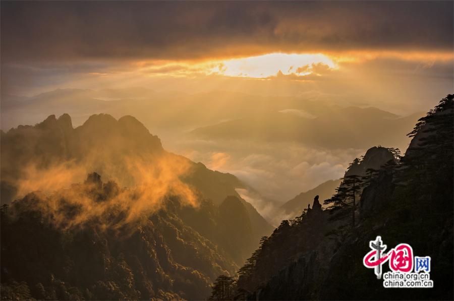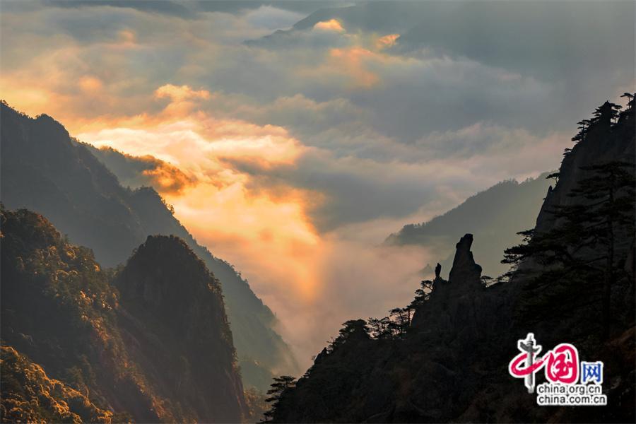原標(biāo)題:只有一個(gè)黃山:日出霞光盡染 云霧輕舒漫卷