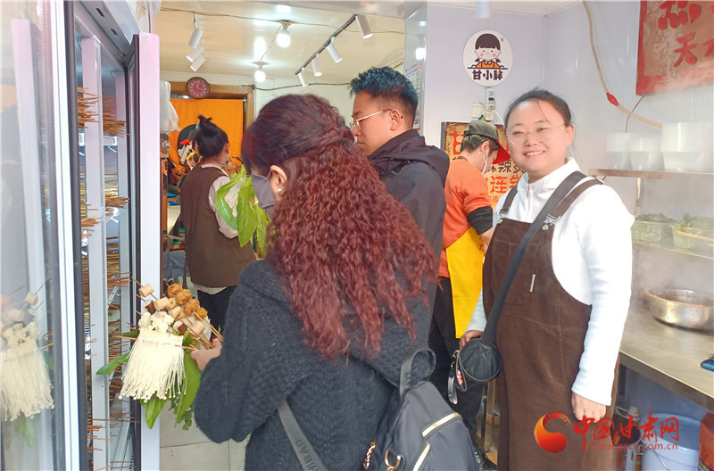 忙不完,根本忙不完,在天水麻辣燙最火爆的四合院,張明霞團隊的“甘小胖”麻辣燙也有一家實體店,正在為天南海北的游客煮麻辣燙。與其他店面不同,他們店還提供天水麻辣燙調(diào)料包,游客覺得好吃可以買回家自己做。