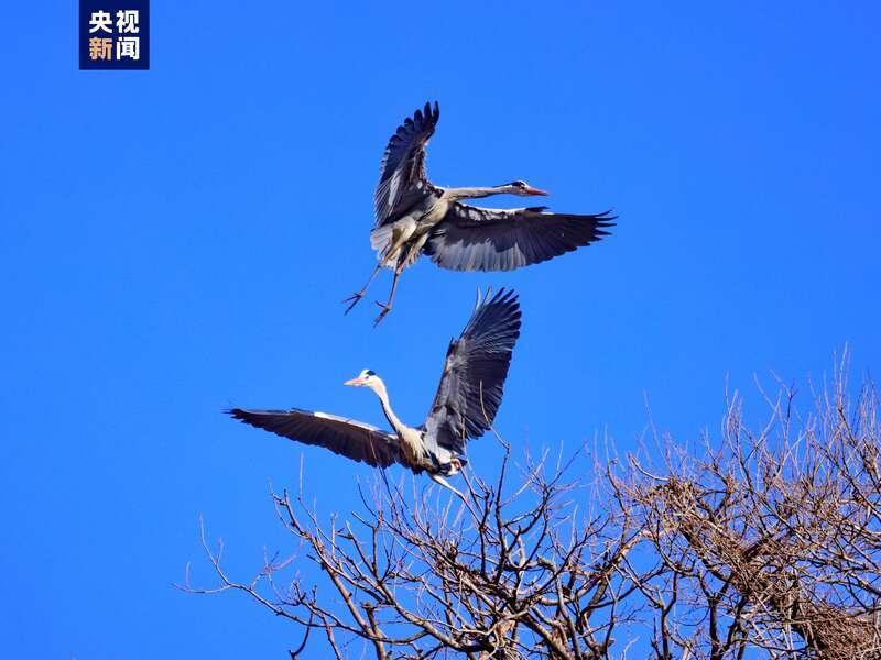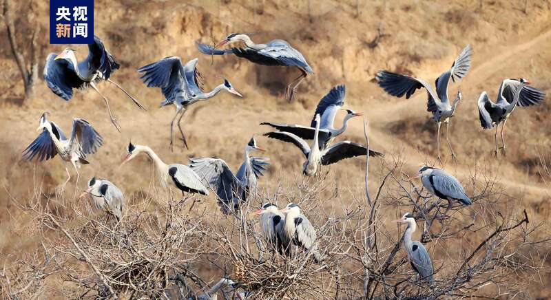 隨著氣溫回升,位于子午嶺腹地的甘肅省慶陽市合水縣太白鎮(zhèn),有成群結(jié)隊(duì)的蒼鷺如約從南方飛來。它們或落在樹冠,偎依在一起,或維修著往年搭建好的巢穴,開啟新一輪的繁衍生息。子午嶺腹地是天然的生態(tài)林區(qū),近年來,當(dāng)?shù)鼐C合實(shí)施固溝保塬、退耕還林、植樹造林等工程,森林覆蓋率達(dá)到69.82%,引來眾多珍稀鳥類繁衍生息。(總臺(tái)記者 焦?。?/p>
