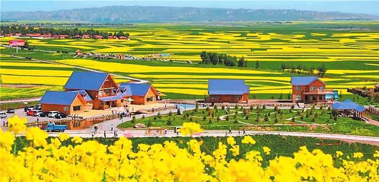 眺望遠(yuǎn)處,一座座大山傲然聳立在半空中,和云朵擦肩而過,山上綠樹成蔭,空氣十分清新。最美的還是田野,爬上山頂往下看,除了空中飛行的鳥兒,一眼望不到邊的是綠油油的田野。227國道將村莊分割為東、西兩塊大小不等的地域,金黃的千畝油菜花海,夾雜著大麥、馬鈴薯的碧綠條塊,環(huán)繞在村莊四周。人工栽植的云杉松柏、紫葉矮櫻等苗木高低起伏地相擁在家家戶戶的房前屋后,坐落在油菜花海和綠樹環(huán)繞中的村莊與小康農(nóng)舍,恰似航船一樣在金黃的花海中漂浮升沉著,煞是美麗。正是這宜業(yè)宜居、可憩可游、美麗愜意的鄉(xiāng)村生活環(huán)境,讓炒面莊贏得“美麗鄉(xiāng)村”示范村和“環(huán)境整潔村”的美譽。