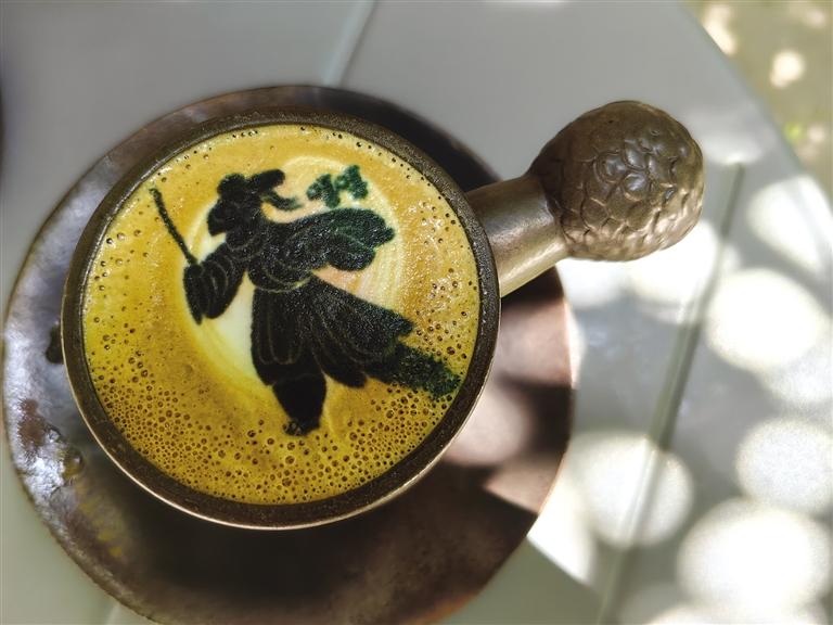 中國甘肅網(wǎng)7月23日訊 據(jù)蘭州晚報(bào)報(bào)道(記者 高宏梅 文/圖)端起一杯咖啡,甘肅省博物館館藏文物銅奔馬微縮圖案漂浮在咖啡之上,精致、唯美;來不及品嘗,省博物館的鷹頭形青銅權(quán)杖首搖身一變,已成為咖啡杯的陶瓷手柄,那厚重、那歷史感,絕對(duì)震撼。這,是甘肅省博物館藝術(shù)生活館(以下簡(jiǎn)稱藝術(shù)生活館)的“文物咖啡”。