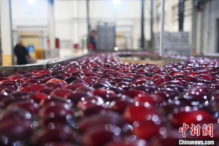 連日來(lái),從事30多年蘋(píng)果生意的秦安縣雪原果品有限公司負(fù)責(zé)人蔡全斌忙得不可開(kāi)交,加工車間內(nèi)蘋(píng)果自動(dòng)化分揀線晝夜不歇,車間外運(yùn)輸蘋(píng)果的大貨車往來(lái)不絕。