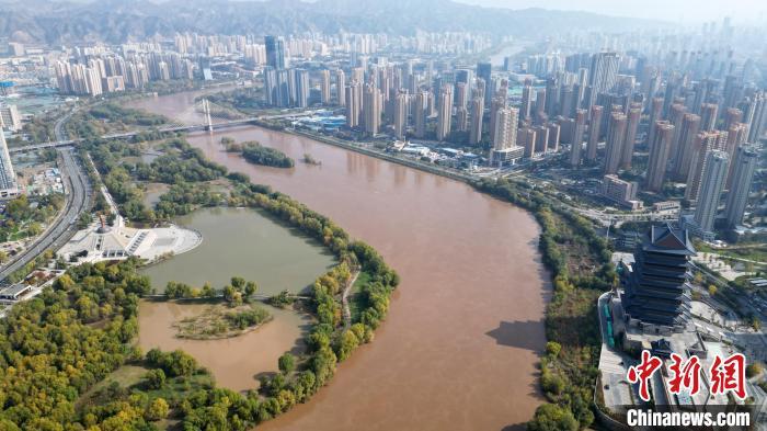 2024年10月31日,黃河蘭州段兩岸的斑斕秋色?!?無人機照片) 九美旦增 攝