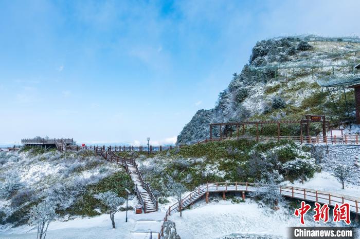 11月25日,受強(qiáng)冷空氣影響,四川省萬源市遭遇強(qiáng)降溫天氣。八臺(tái)山景區(qū)迎來了一場(chǎng)降雪,雪花紛紛灑灑,八臺(tái)山被裝點(diǎn)成了銀裝素裹的冰雪世界。鄭興平 攝