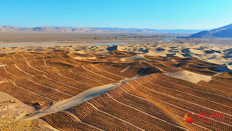 據(jù)了解,金塔縣黑河中游防沙治沙林草綜合治理項目,今年計劃給1174畝沙漠戴上草方格“圍脖”,工期50天,預計需要稻草410噸。隨著治沙進度的加快,一個個草方格沙障從無到有漸次鋪開,猶如一條條金色的“鎖鏈”,牢牢鎖住沙丘,在茫茫沙海筑起了一道道生態(tài)安全屏障。當下正值農(nóng)閑時節(jié),該項目通過“以工代賑”,改變了傳統(tǒng)做法,通過有償勞動讓群眾由治沙的“看客”變?yōu)橹紊车?ldquo;主角”,構建起全民參與防沙治沙新格局,實現(xiàn)治沙致富雙贏,預計增加群眾收入3000余萬元。