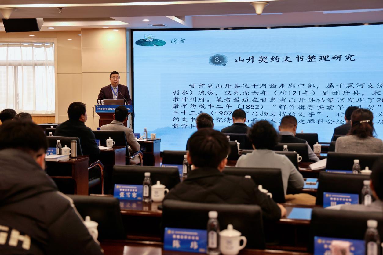 此外,河西學(xué)院歷史文化與旅游學(xué)院院長(zhǎng)謝繼忠教授也在論壇上作了主旨報(bào)告,他通過(guò)新發(fā)現(xiàn)的20份山丹契約文書,深入剖析了清末甘肅山丹鄉(xiāng)村社會(huì)治理的特點(diǎn)及其啟示,為認(rèn)識(shí)傳統(tǒng)社會(huì)整體面貌及其特點(diǎn)提供了新史料、新視角。