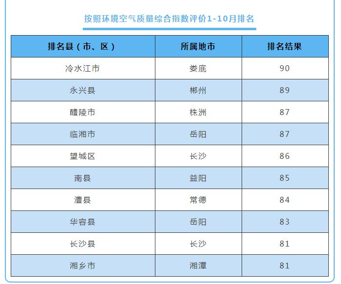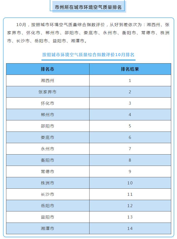 原標(biāo)題:10月湖南環(huán)境空氣質(zhì)量:湘西張家界位居前茅