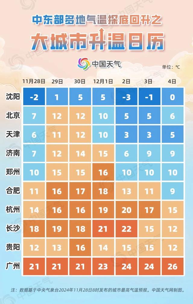 過去五天,今年下半年首場寒潮來勢洶洶,我國多地都度過了下半年來最冷的一天。隨著寒潮影響結(jié)束,中東部大部氣溫探底回升,今天(11月28日)起各地將陸續(xù)進(jìn)入升溫模式,長江中下游等地有望沖擊20℃。中國天氣網(wǎng)推出大城市升溫日歷,看你家何時(shí)上演冷暖逆轉(zhuǎn)。
