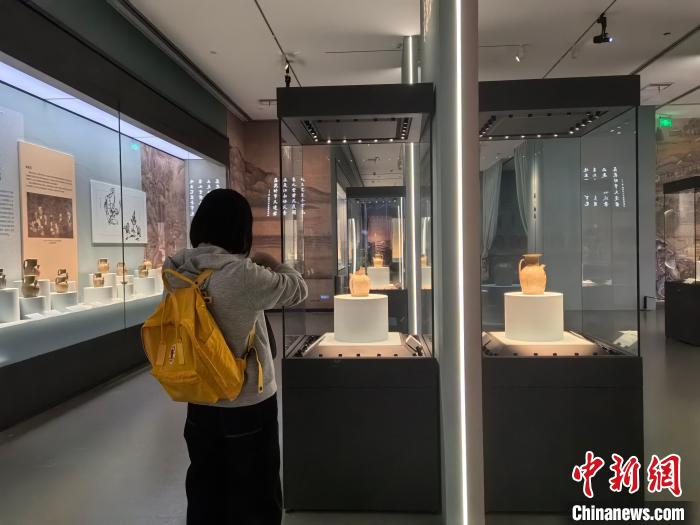 參觀者欣賞展品?!堁┯?nbsp;攝