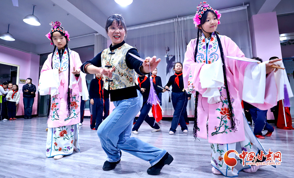 12月4日,張掖市高臺縣非遺保護中心的老師們來到解放街小學,向1800多名孩子們傳授戲曲表演、剪紙、古箏演奏等“非遺”技藝,讓更多師生了解、學習非遺。