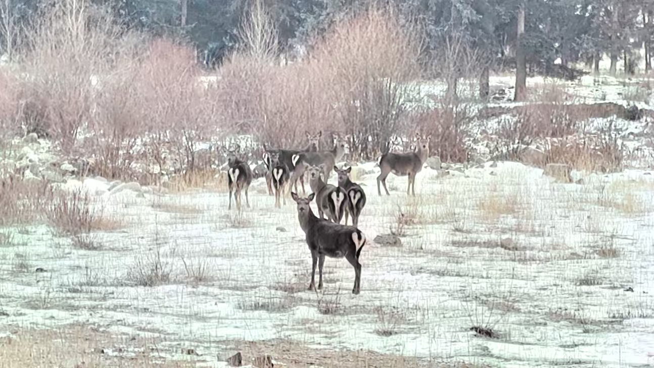 近日,甘肅祁連山國(guó)家級(jí)自然保護(hù)區(qū)管護(hù)中心哈溪自然保護(hù)站華山資源管護(hù)站管護(hù)人員在野外巡護(hù)過(guò)程中,在轄區(qū)海拔2900米的山區(qū)內(nèi),偶遇一群正在覓食的馬鹿,立刻用手中的巡護(hù)終端拍攝到了這珍貴的畫面。