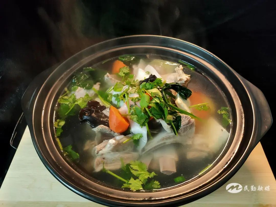 羊肉與配菜同煮,加入簡(jiǎn)單調(diào)料,食材的本味得以凸顯。
