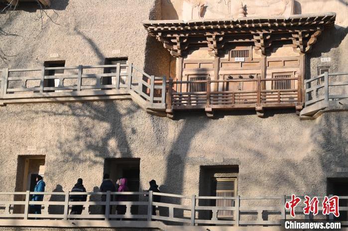 1月13日,甘肅敦煌莫高窟景區(qū)內,游人半價進行參觀。中新社記者 李亞龍 攝