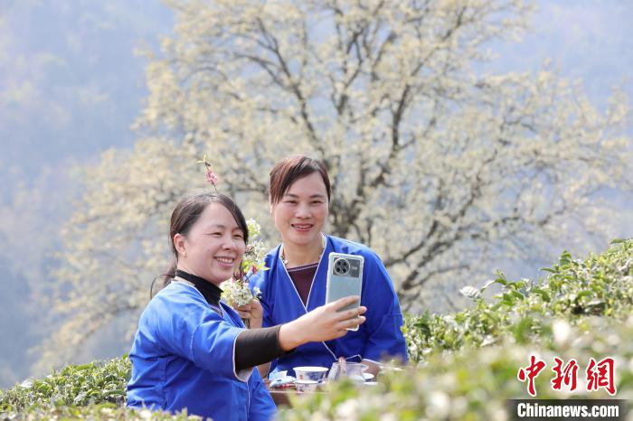 3月16日,廣西三江侗族自治縣八江鎮(zhèn)歸令村六更屯種植的千樹梨花迎春綻放,與青翠茶園、特色民居相映成趣,構(gòu)成一幅如詩如畫的春日畫卷。當(dāng)?shù)卮迕窦坝慰图娂娗皝聿刹栀p花、“打卡”拍照,享受春日美好時(shí)光。圖為村民在采春茶。龔普康 攝