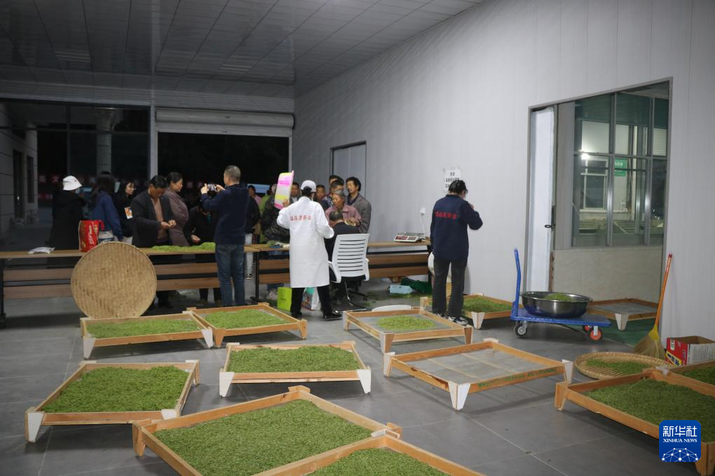 中廟鎮(zhèn)溢品茗茶葉加工廠收購當(dāng)?shù)夭柁r(nóng)茶葉鮮葉。新華社記者李杰 攝