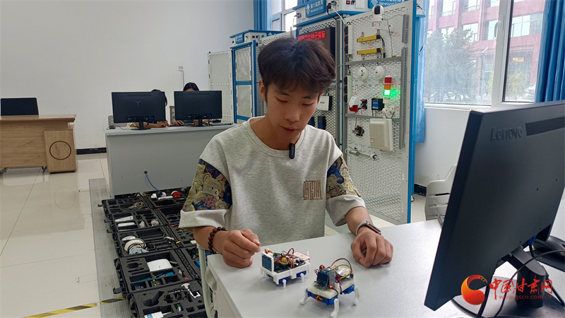 培黎職業(yè)學院信息技術(shù)學院學生唐俊杰和他的創(chuàng)新團隊最近組裝了兩只機器狗,通過語音遙控可以實現(xiàn)指令輸出,達到陪伴、互動的目的。唐俊杰說,“手腦并用、創(chuàng)造分析”鼓勵他們要理論聯(lián)系實際,以動手能力讓圖紙變成現(xiàn)實,機器狗是他們的在實踐課程中不斷創(chuàng)新探索而來。